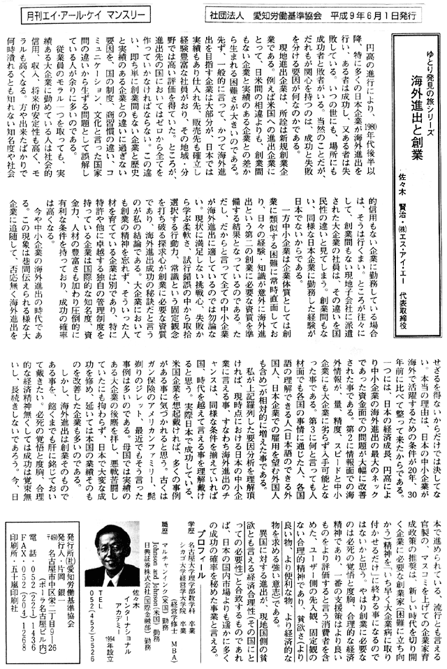 佐々木賢治が紹介、または執筆した新聞・雑誌の記事をご紹介致します。
