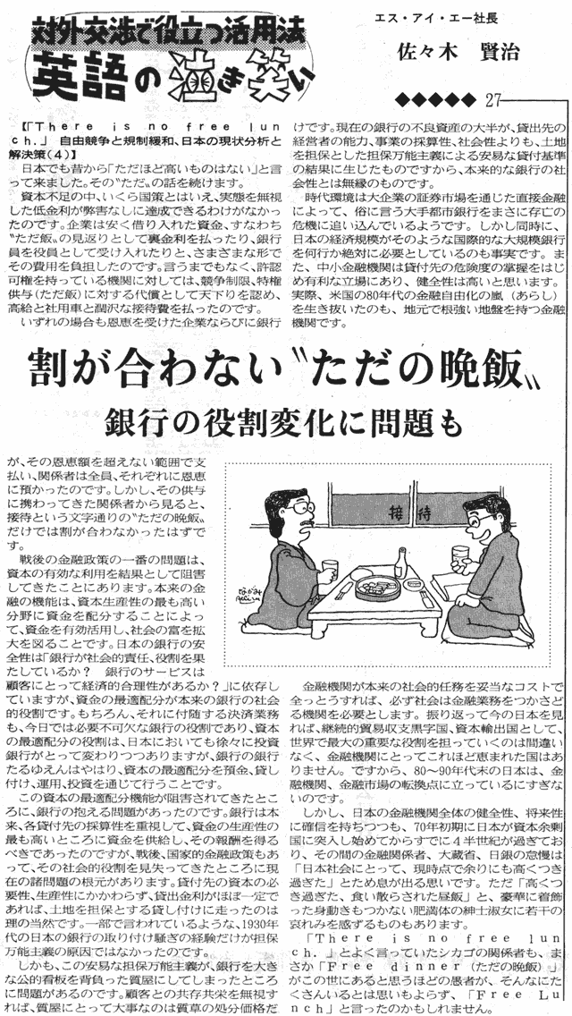 金融問題に“ただ飯”はない